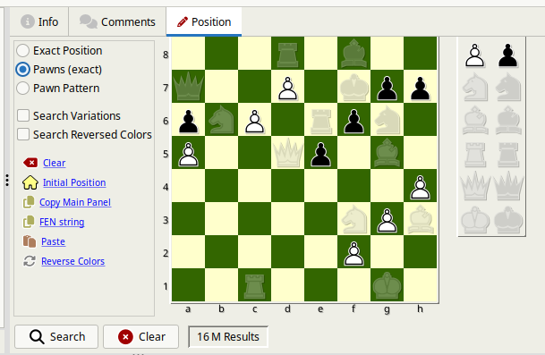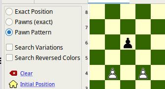 Searches for a pawn pattern in the databsae. Additional pawns, and pieces can be placed anywhere.
