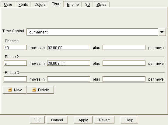Edit time control settings. Use the Popup List on top to choose one of the settings.