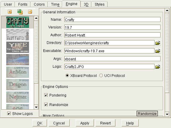If the selected engine responds to the UCI protocol, it will fill in most fields automatically.