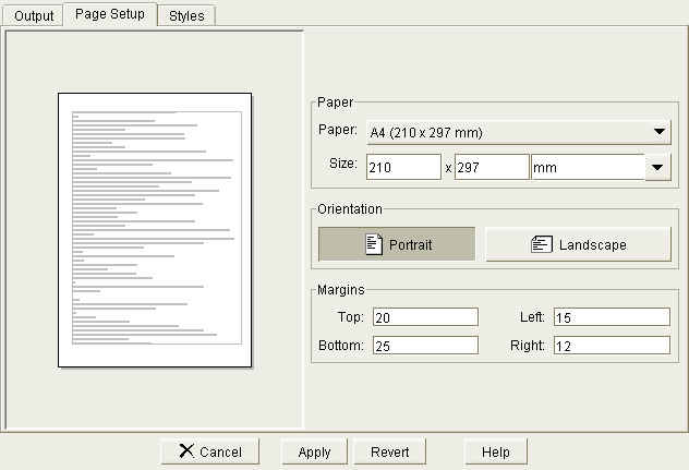 Use this tab to select a paper format for printing. It is also used when creating PDF files.
